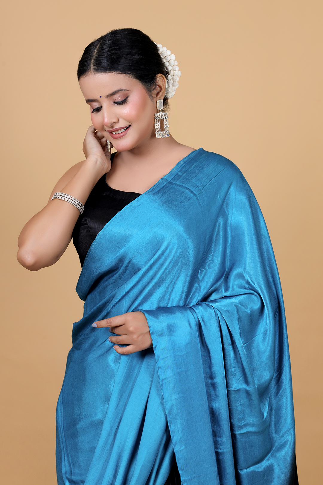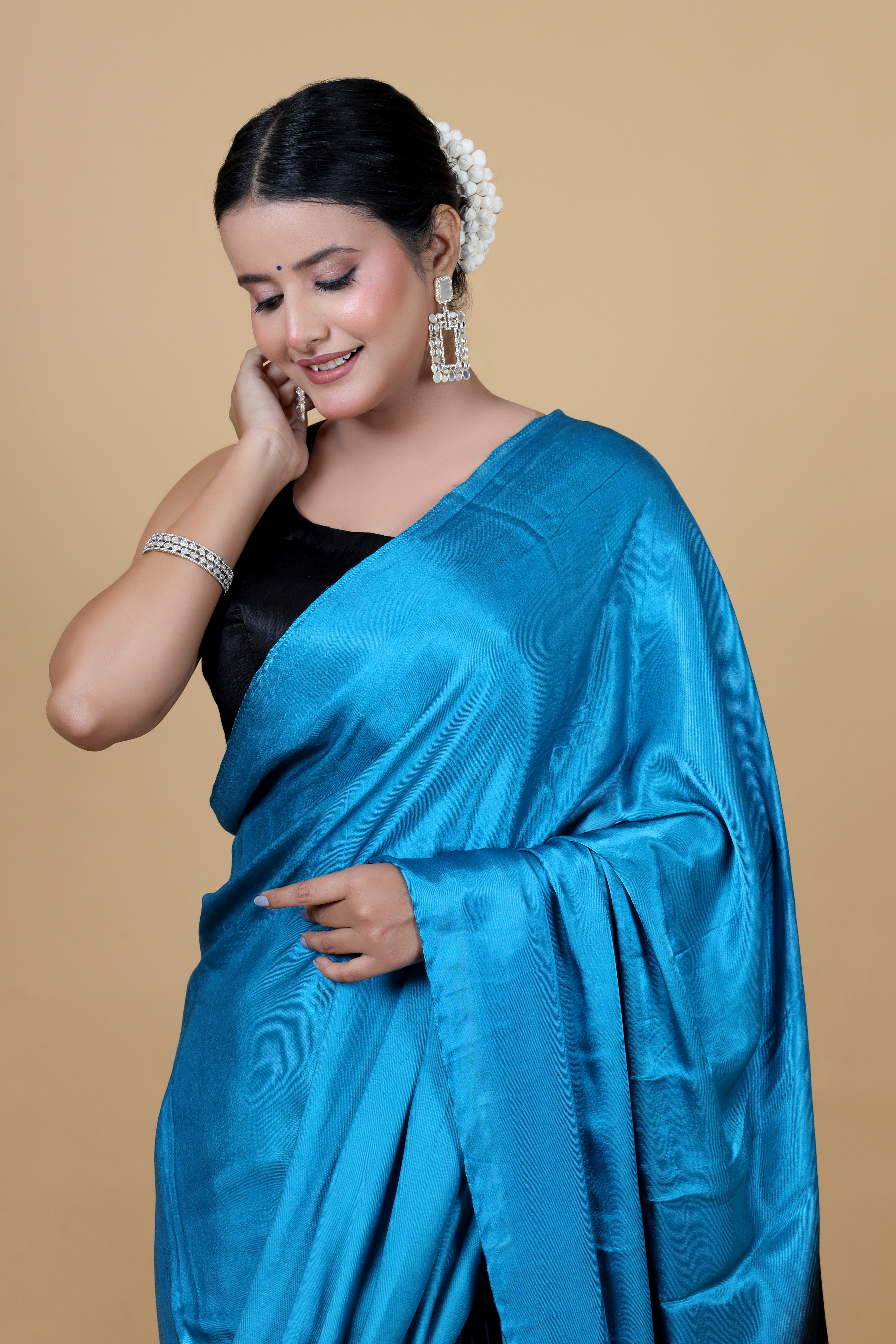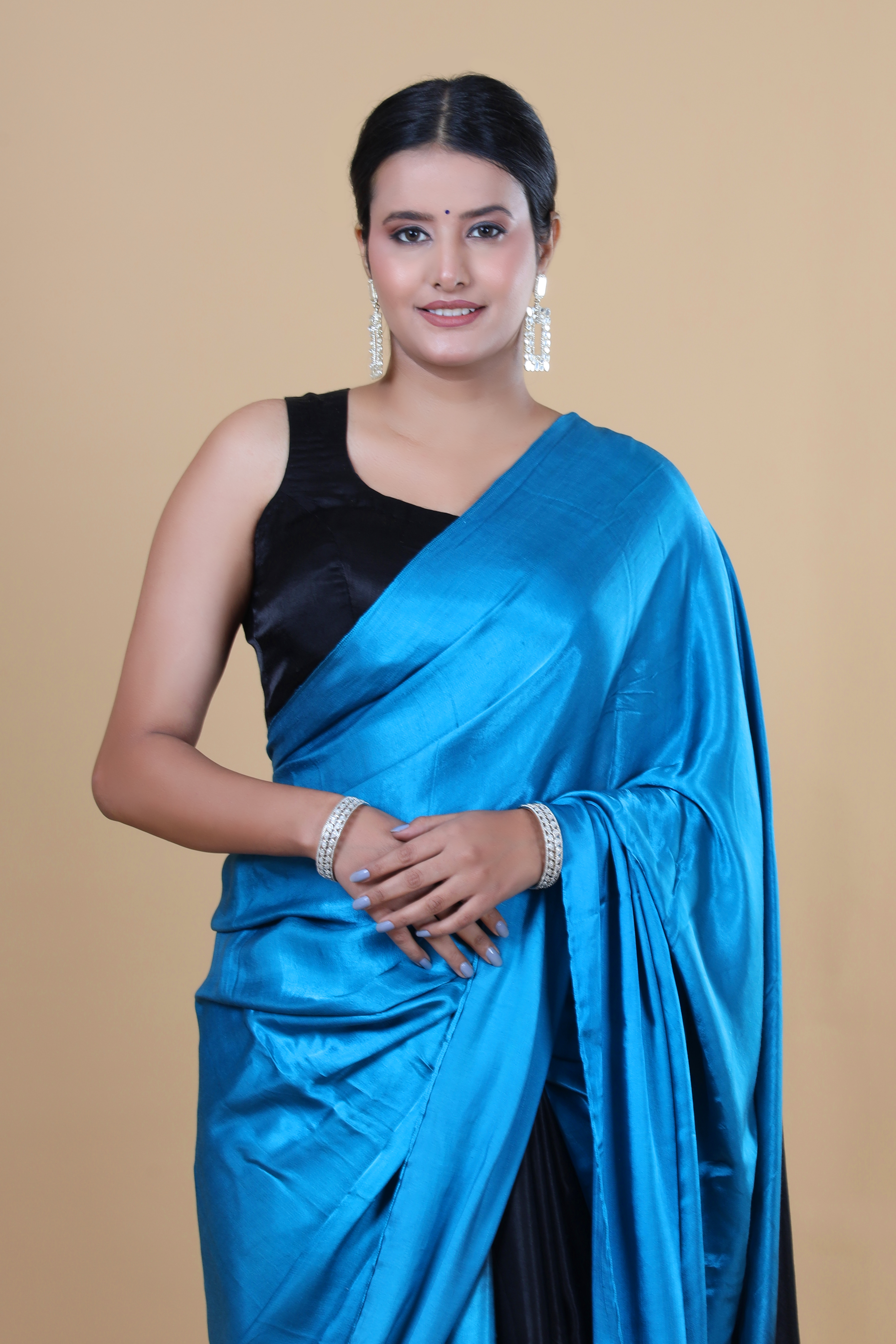Experience the royal charm of traditional elegance with this stunning Firoji Blue and Black Gajji Silk Saree. Crafted from premium-quality Gajji silk, it offers a luxurious drape and natural sheen that enhances your festive or wedding look. The contrasting hues of firoji blue and black make it a timeless statement piece for any special occasion.