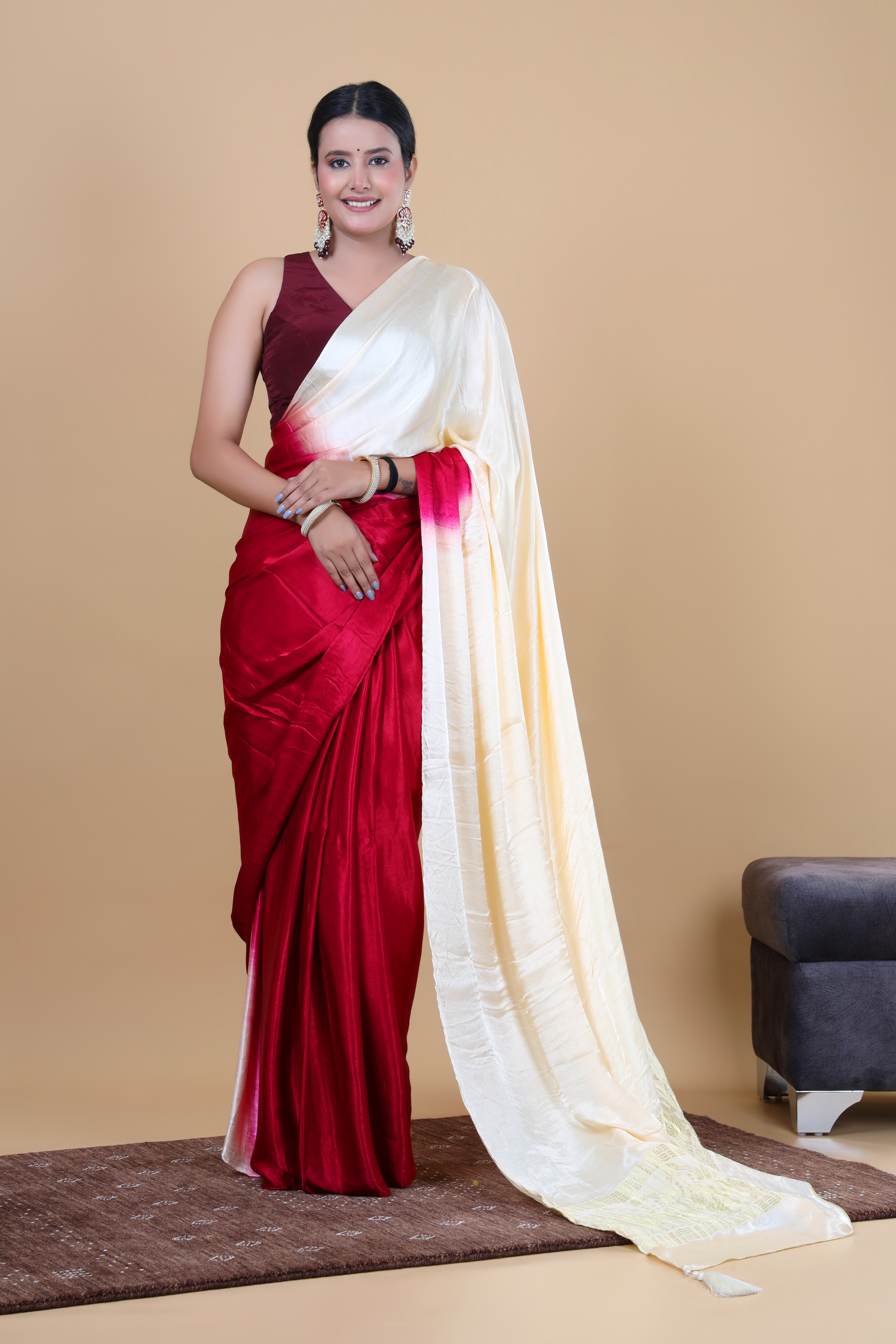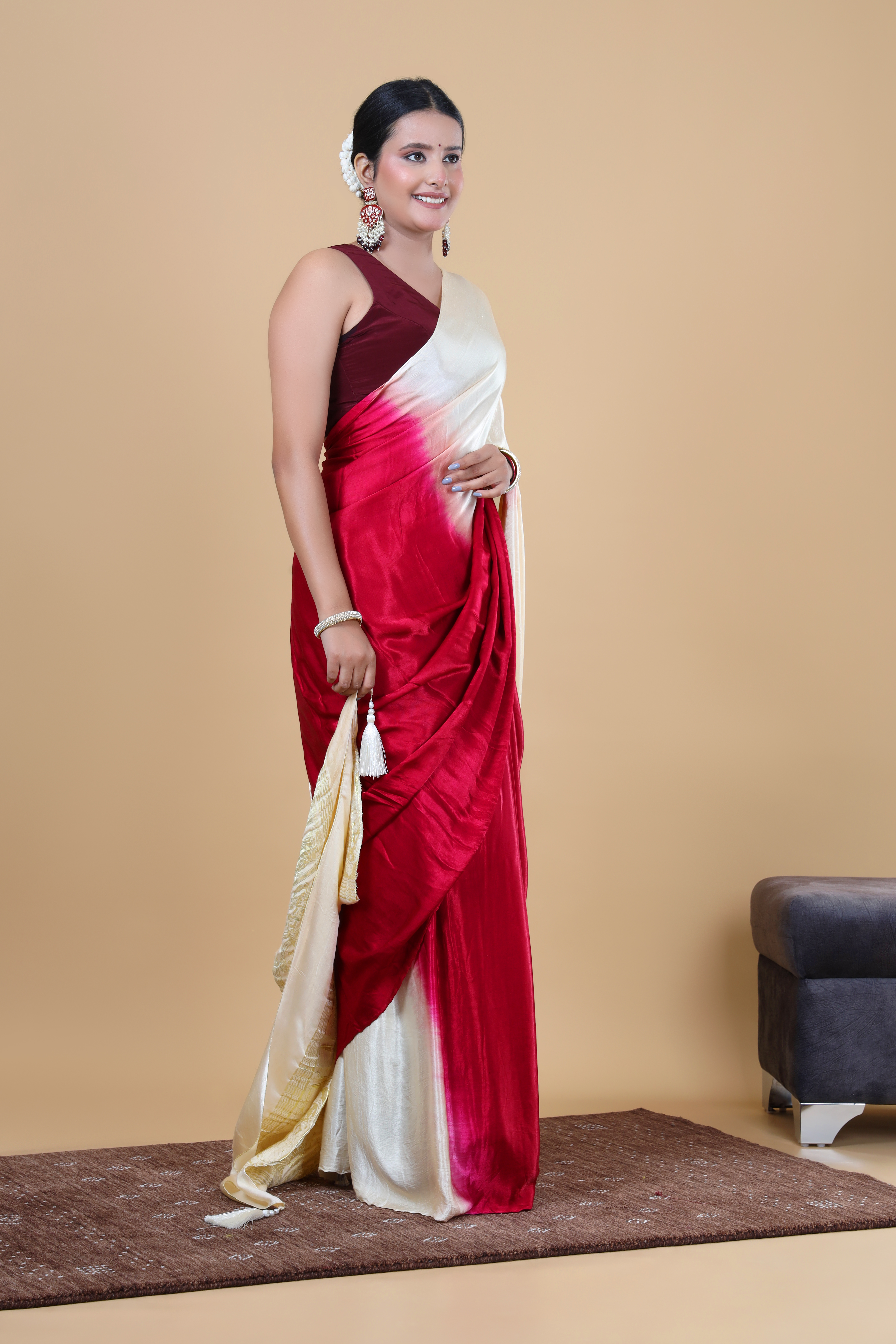 Radiate elegance with this Off White and Magenta Pink Gajji Silk Saree, a perfect blend of luxury and tradition. Crafted from premium Gajji silk, it features a smooth texture and rich sheen that drapes beautifully, giving you a graceful and sophisticated look.