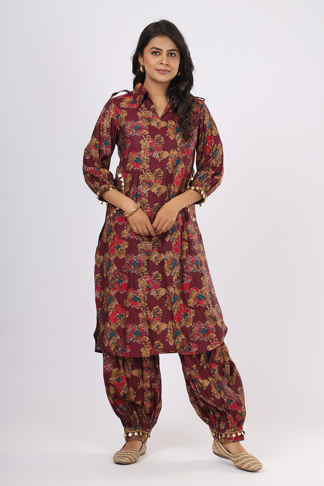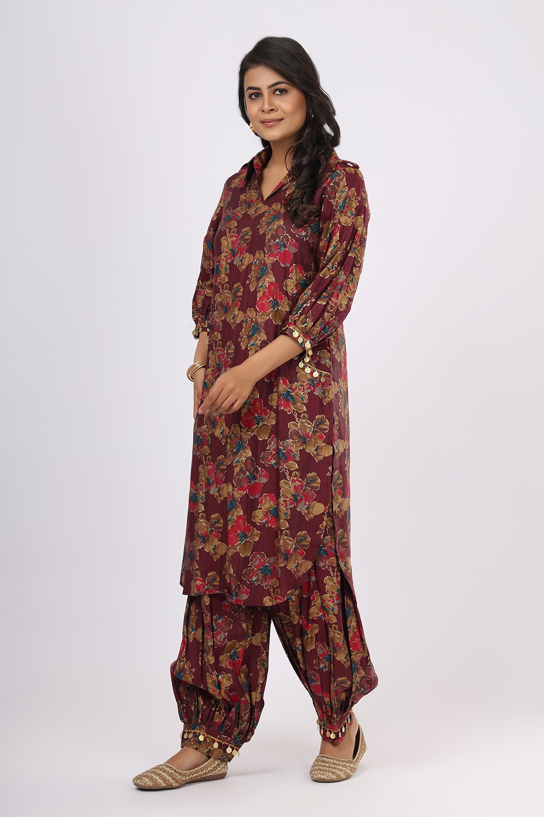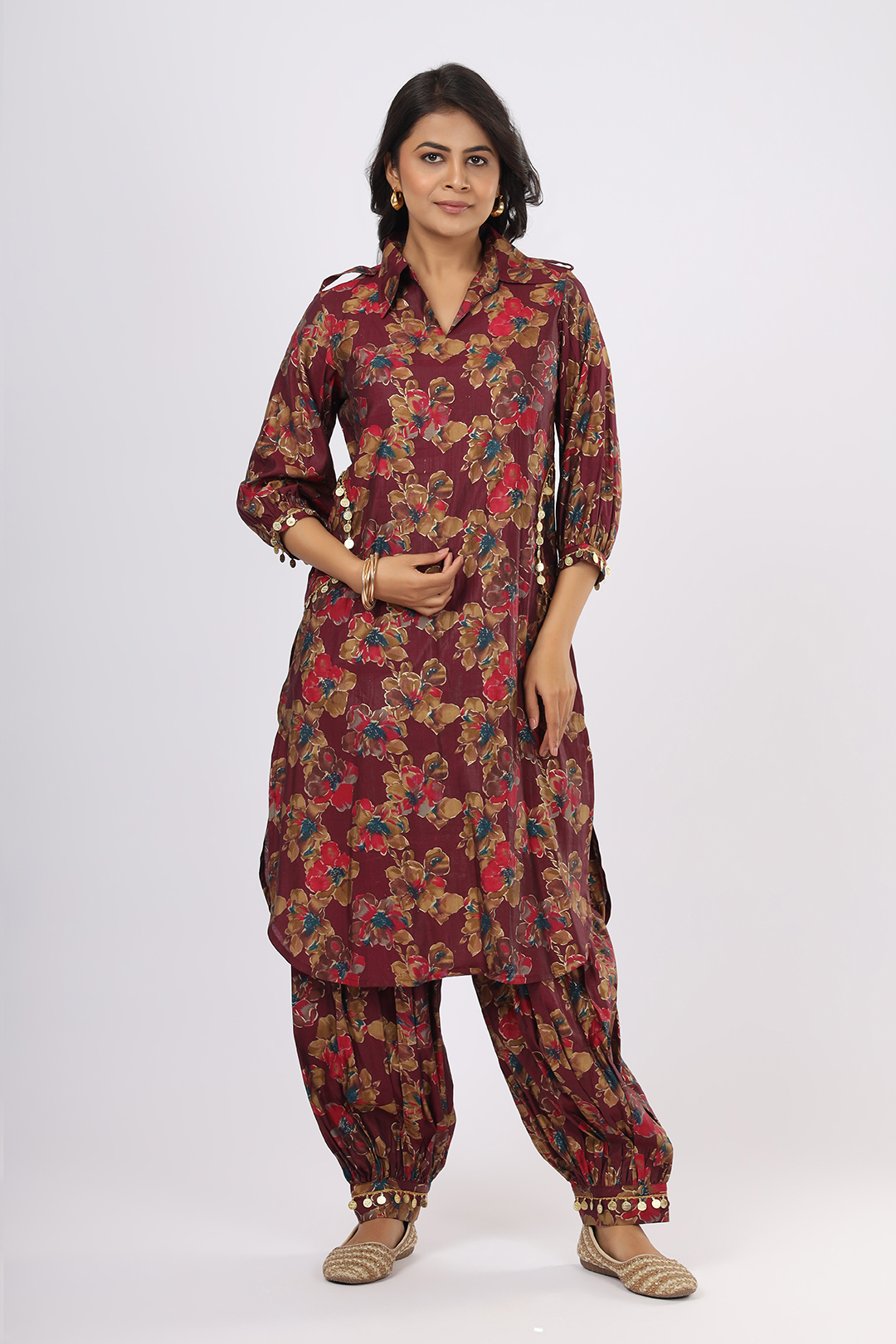 Experience elegant ethnic style with this BURGUNDY Chanderi Silk Traditional Pathani Co-Ord Set for Women, exclusively designed by V Glame. Crafted in luxurious Chanderi Silk, the outfit offers a soft sheen, airy feel, and a premium festive drape.