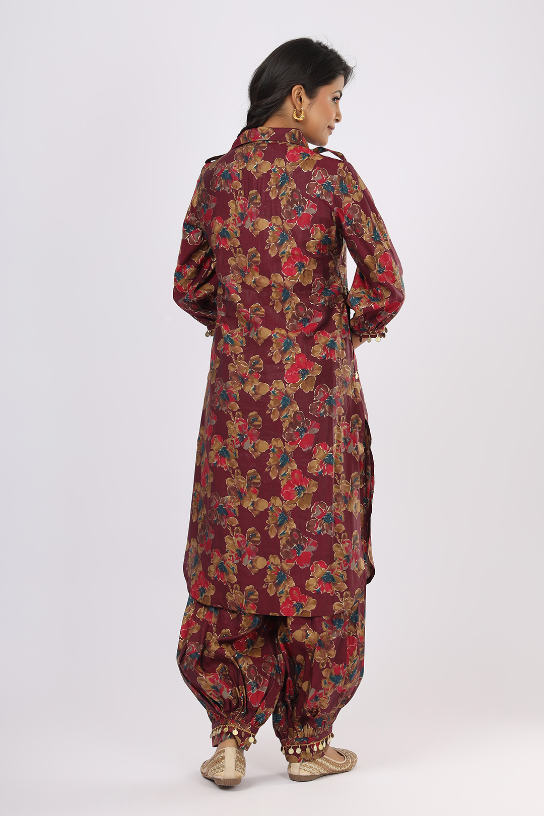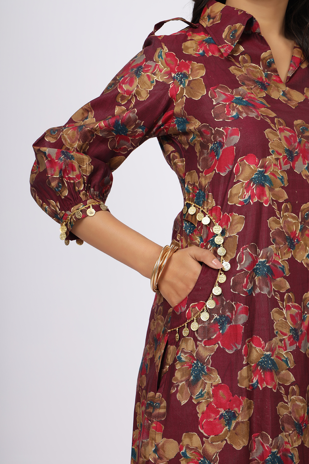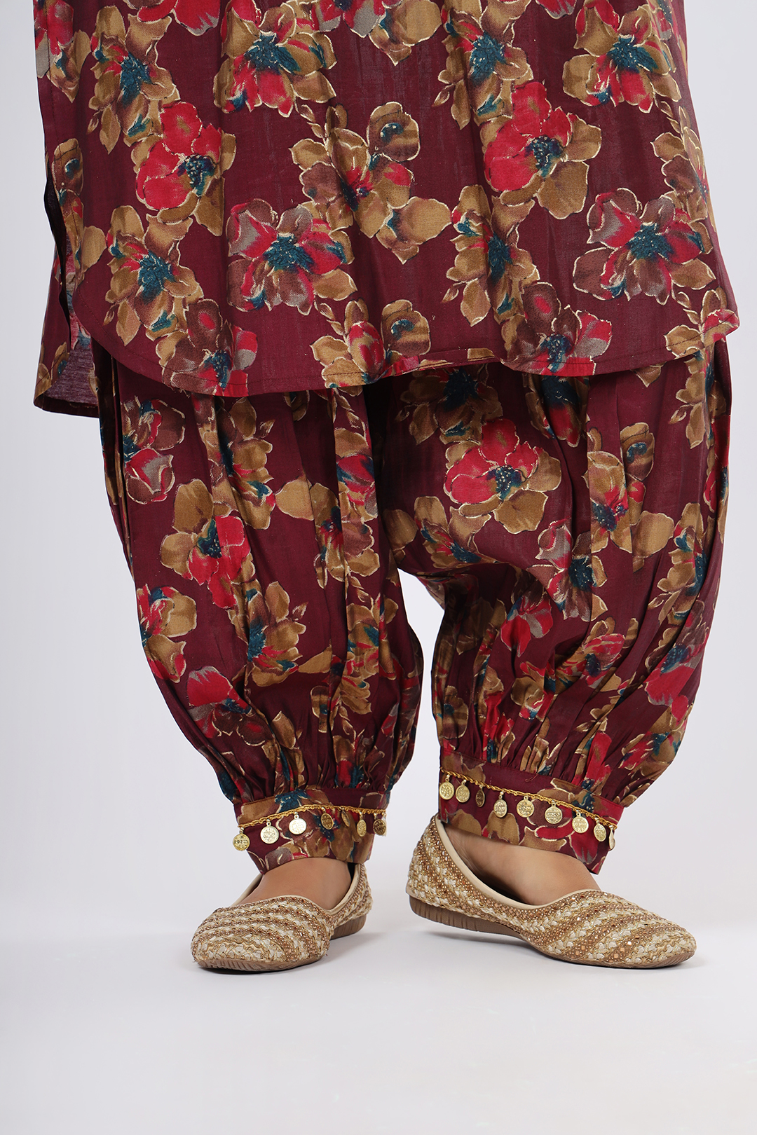 Experience elegant ethnic style with this BURGUNDY Chanderi Silk Traditional Pathani Co-Ord Set for Women, exclusively designed by V Glame. Crafted in luxurious Chanderi Silk, the outfit offers a soft sheen, airy feel, and a premium festive drape.