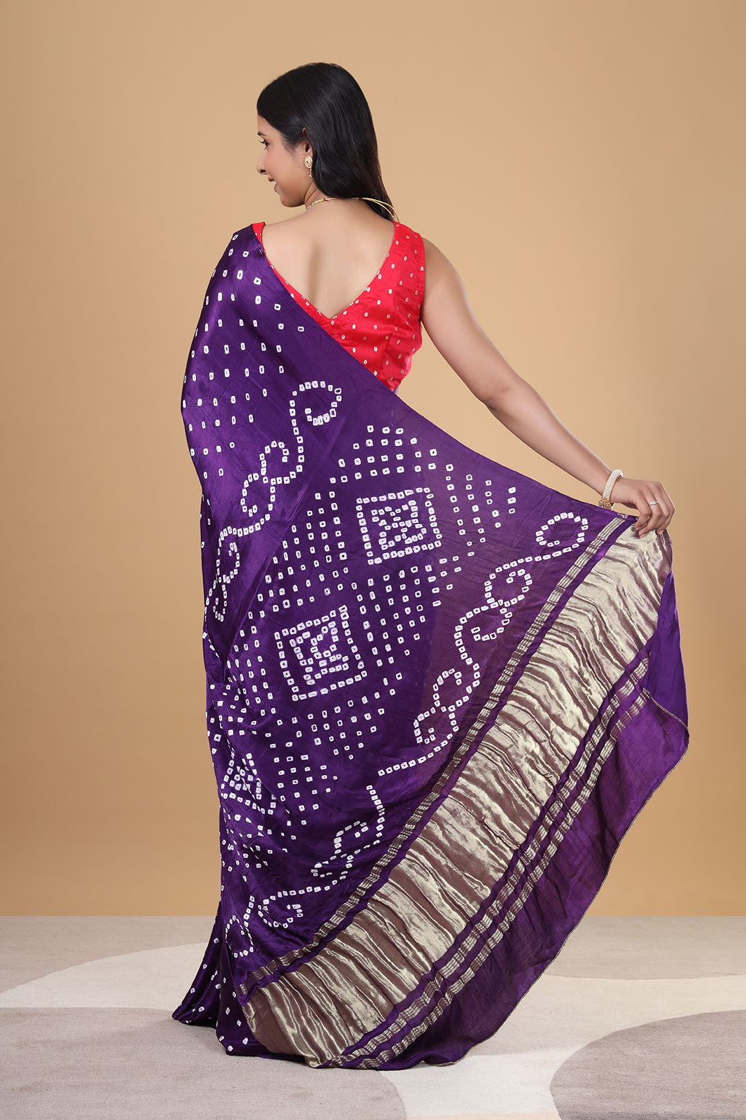 Ideal for weddings, cultural events, and festive celebrations, this blue Gajji Bandhej saree offers graceful draping, soft texture, and traditional sophistication, making it perfect for women who appreciate timeless Indian craftsmanship.