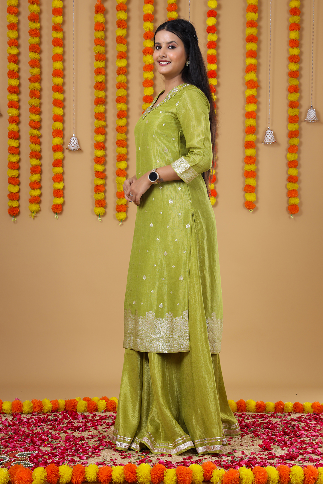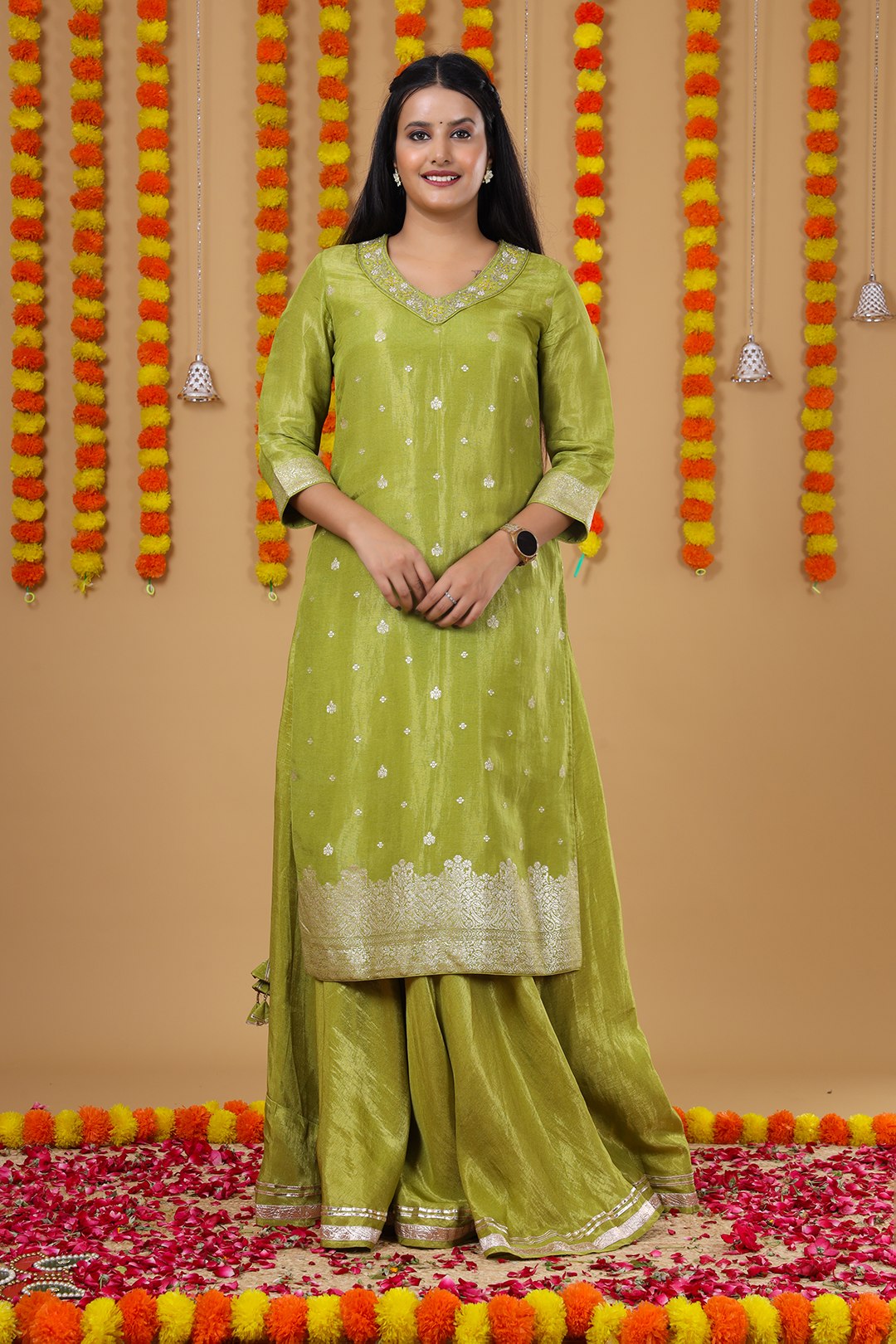 Designed with care by Team V Glame, this kurta set is a blend of modern sophistication and traditional artistry. It drapes beautifully, offering both style and comfort, making it a must-have for your ethnic collection. To preserve its richness and delicate detailing, this outfit is recommended for dry clean only.