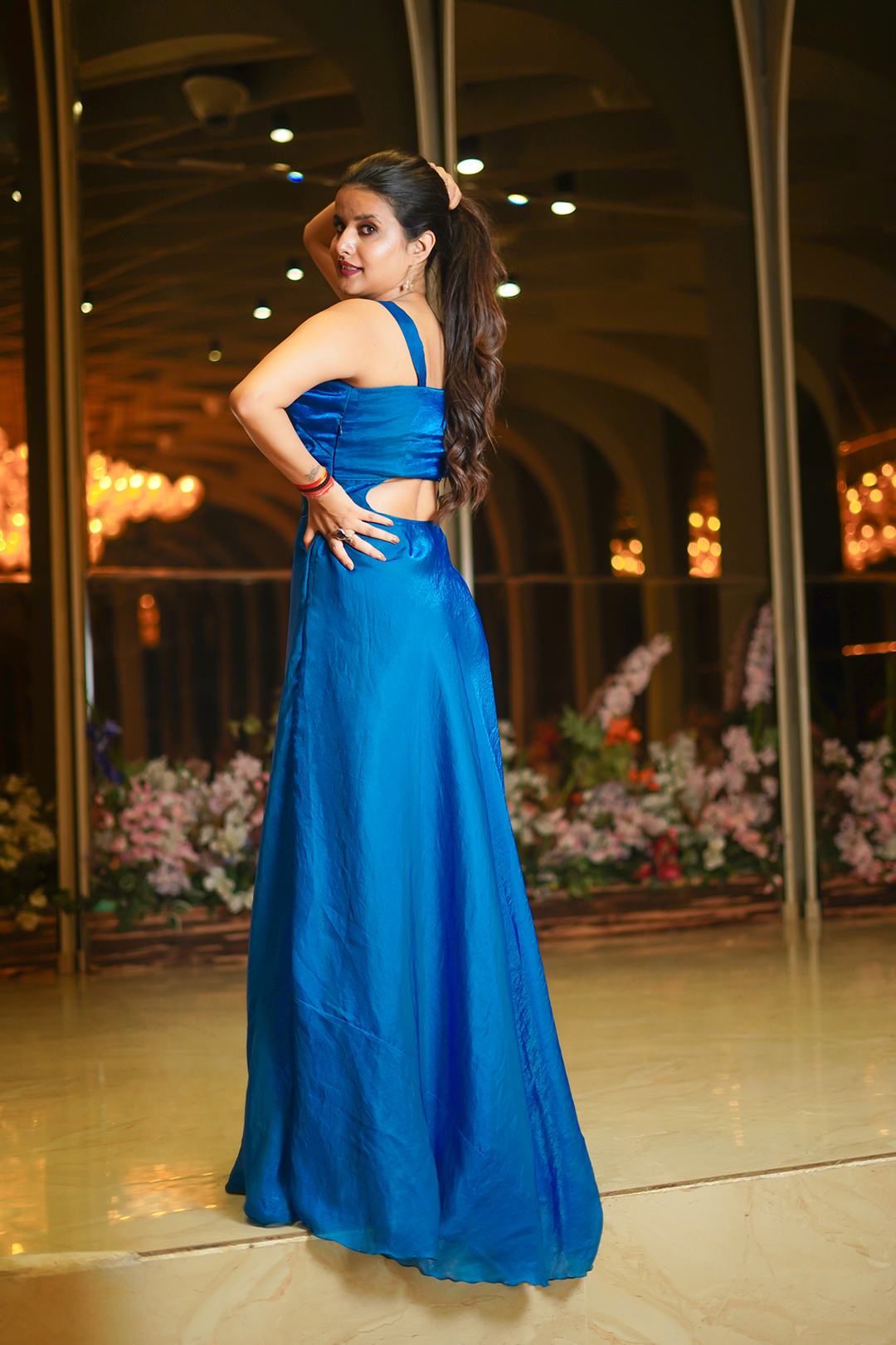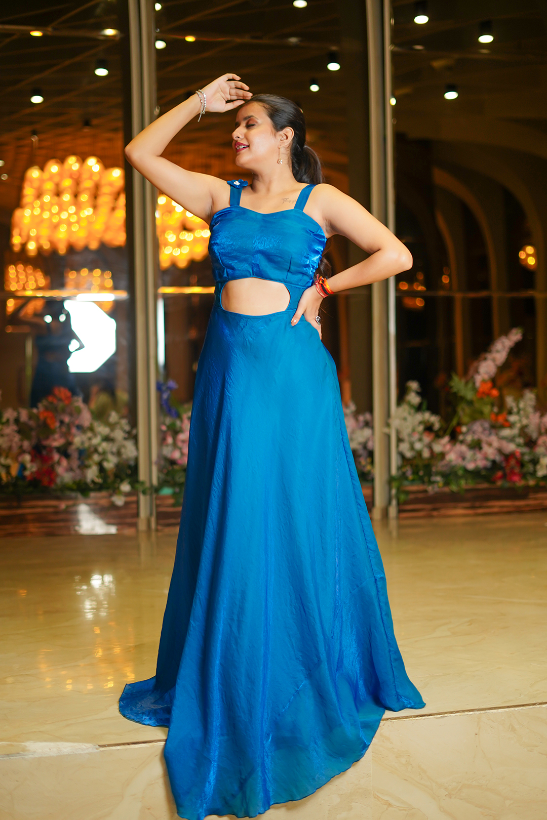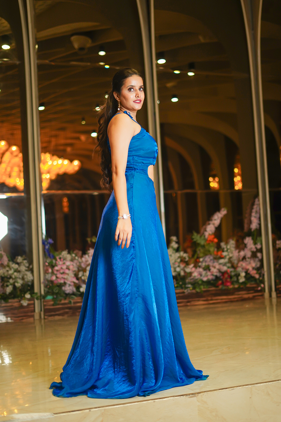 Exclusively designed by Team V Glame, this one piece is tailored for women who love sophistication with comfort. The rich blue color enhances the elegance of satin, making you stand out effortlessly in any crowd. To maintain its shine and premium finish, the attire is recommended for Dry Clean Only.