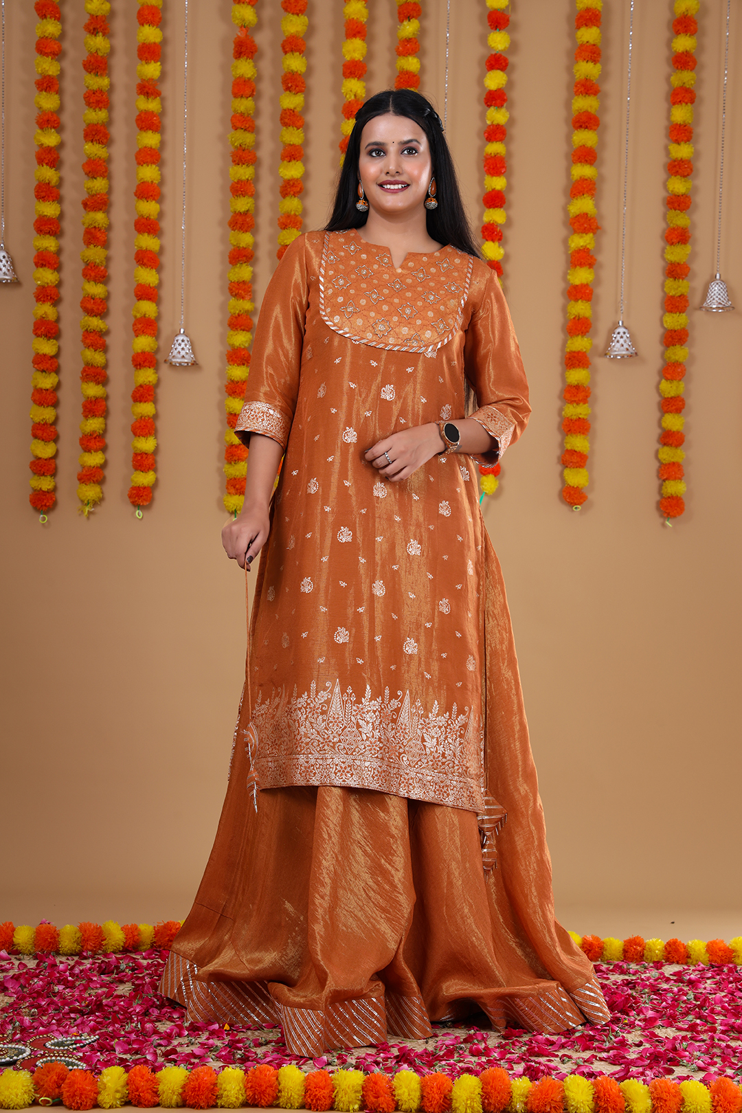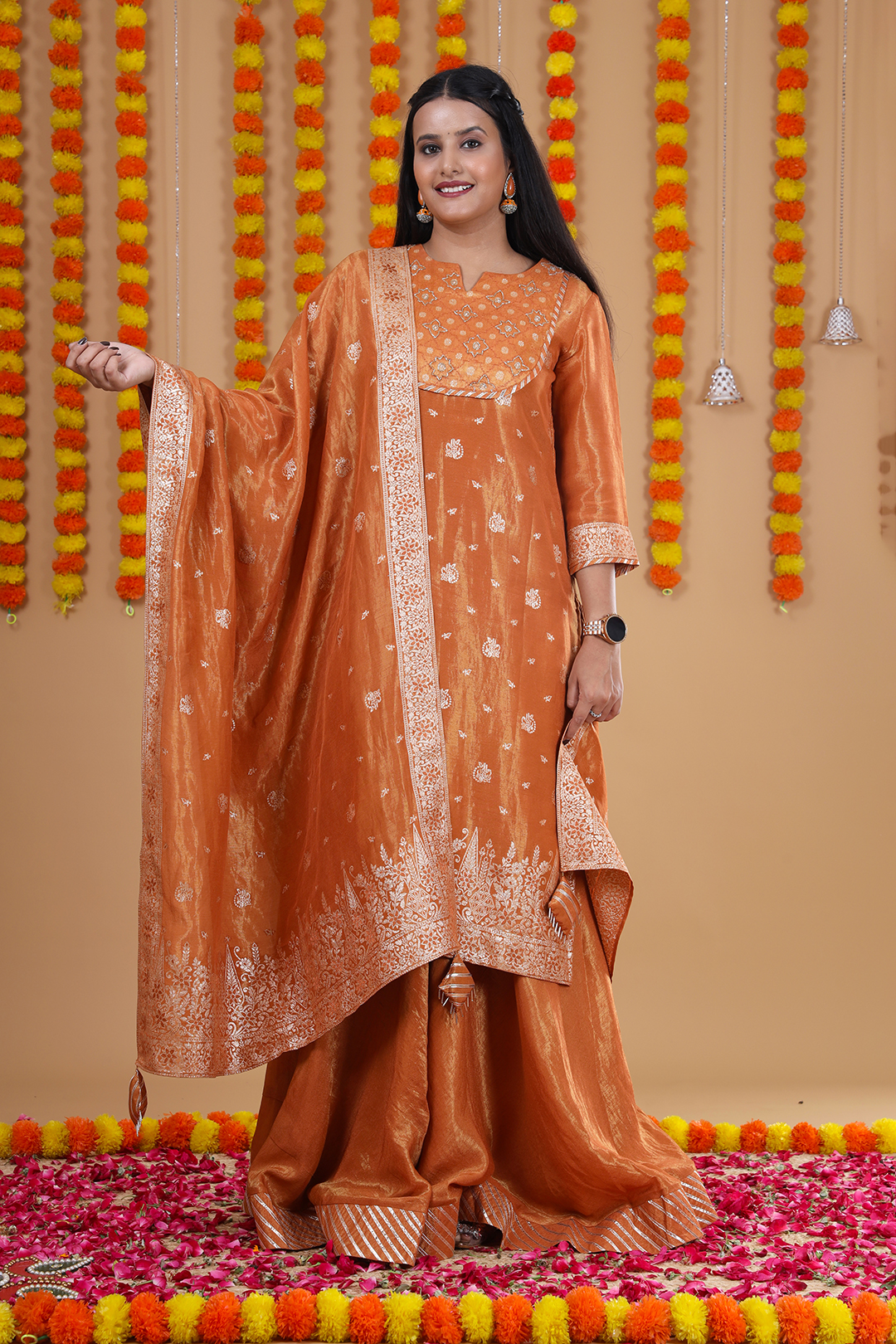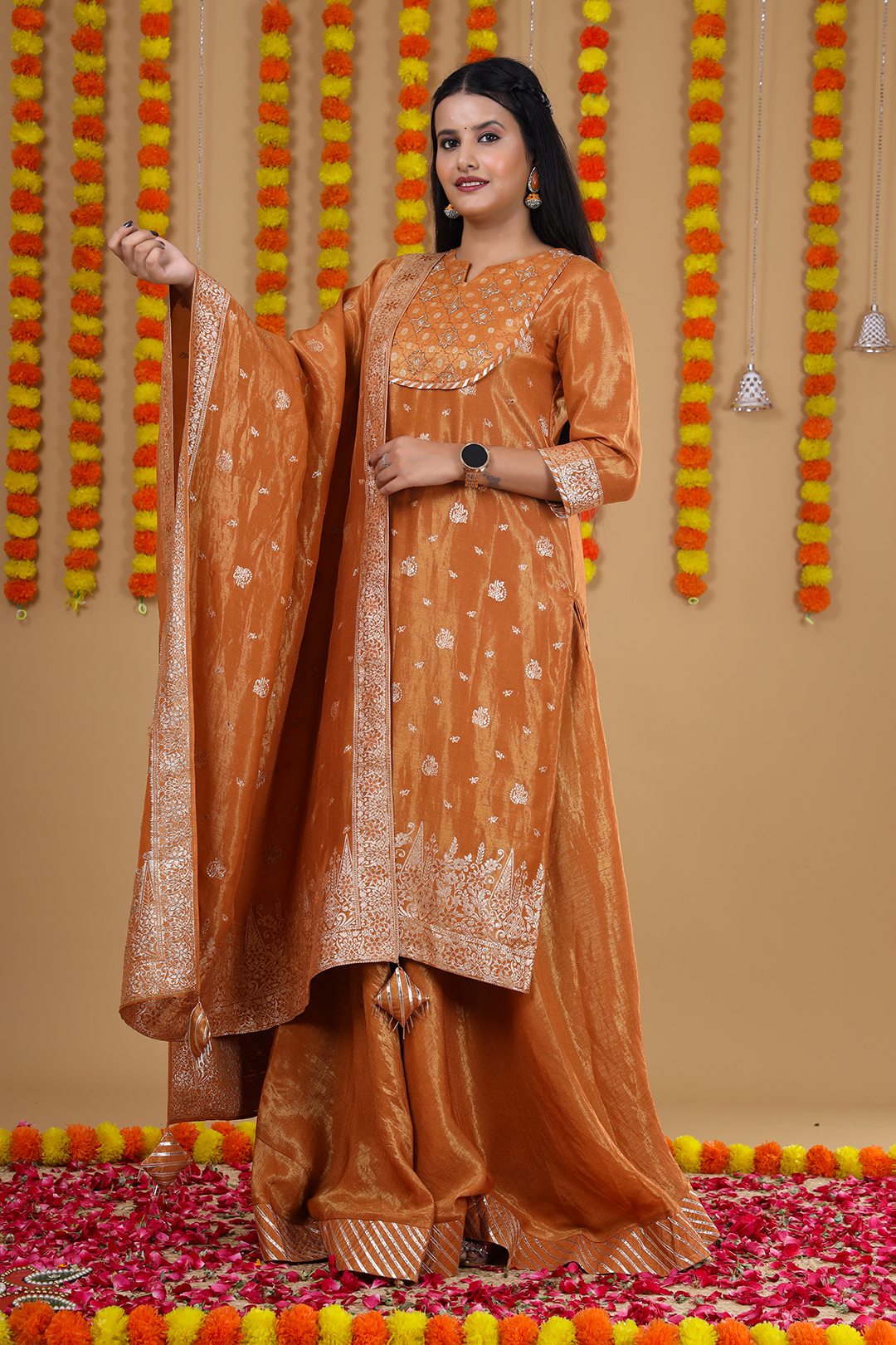 Bring timeless elegance to your festive and wedding wardrobe with the Vglame Rust Orange Kurta Set, crafted from premium Glamour Viscose. The rich rust orange shade combined with intricate detailing makes this outfit a perfect choice for weddings, festive gatherings, and cultural celebrations.
