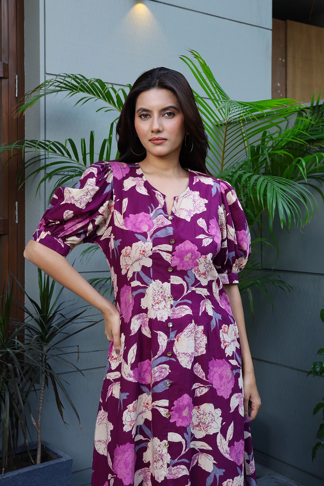The dress is tailored with waist darts for a flattering and structured fit, while the puff sleeves add a trendy and feminine touch. The one-piece silhouette keeps the look easy and breezy, perfect for effortless styling.