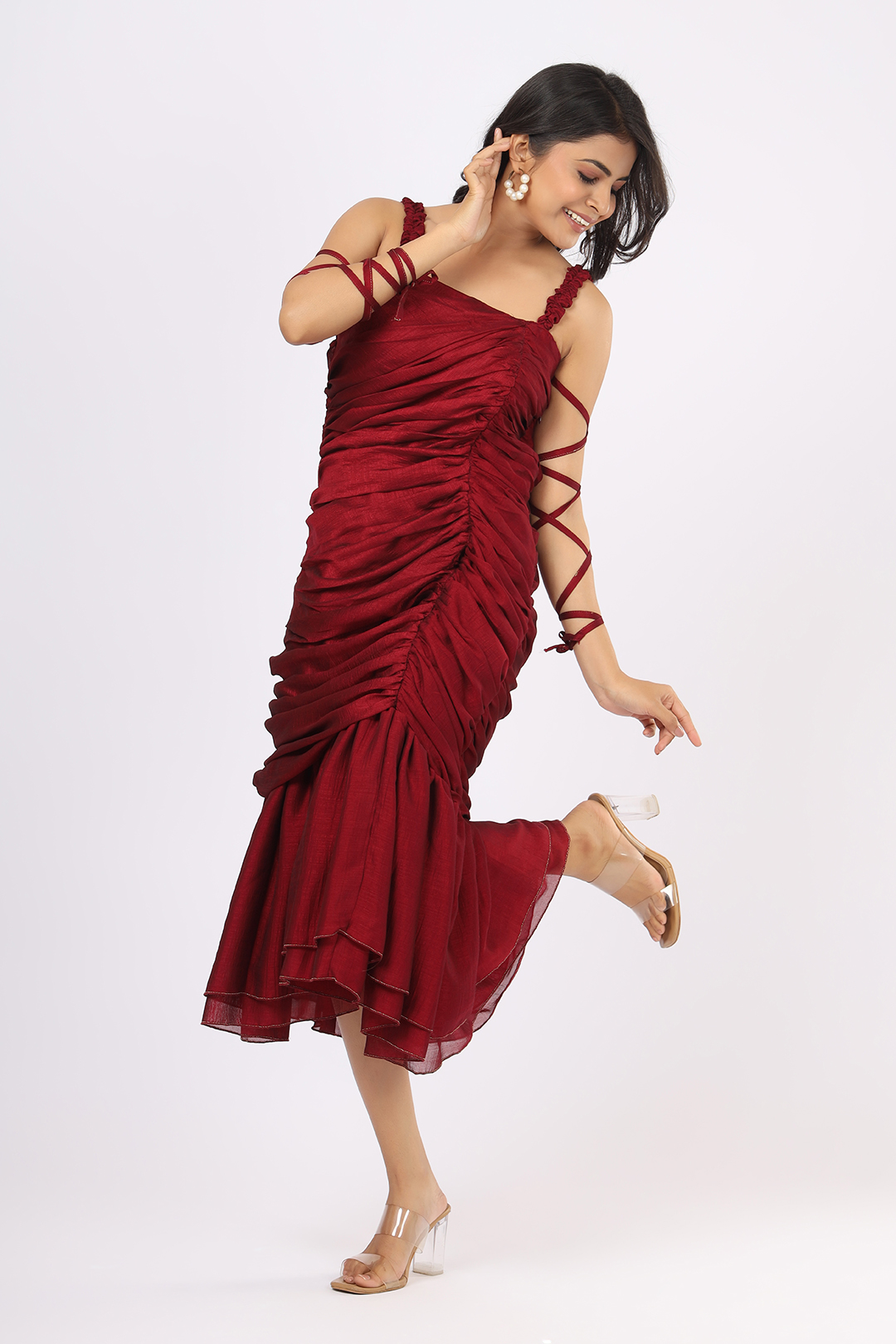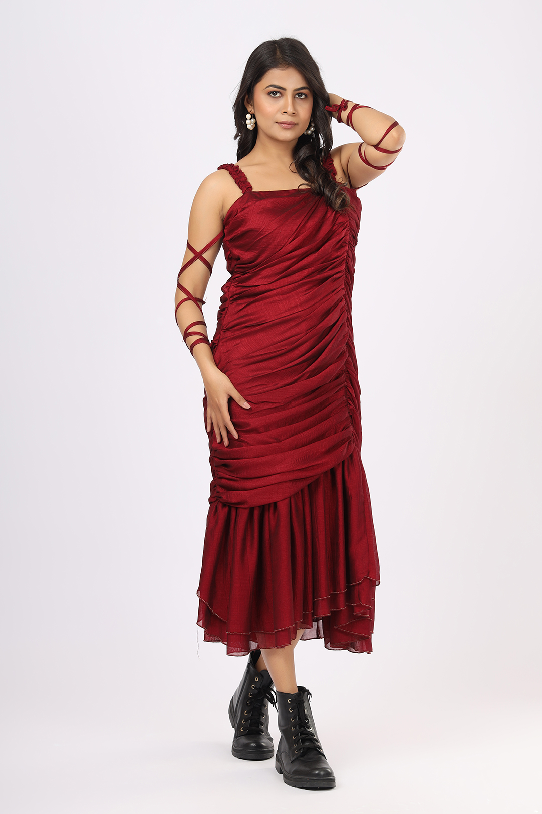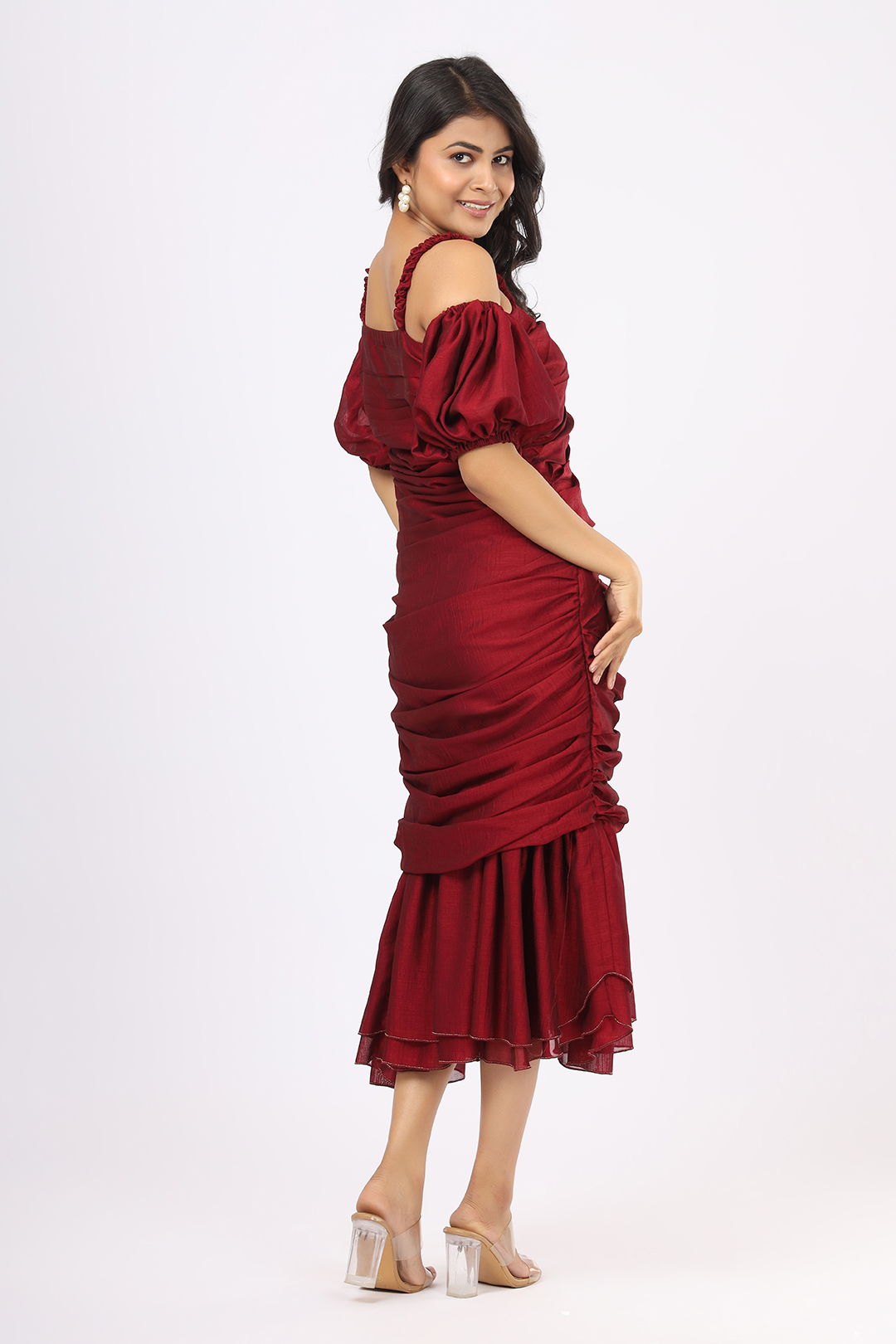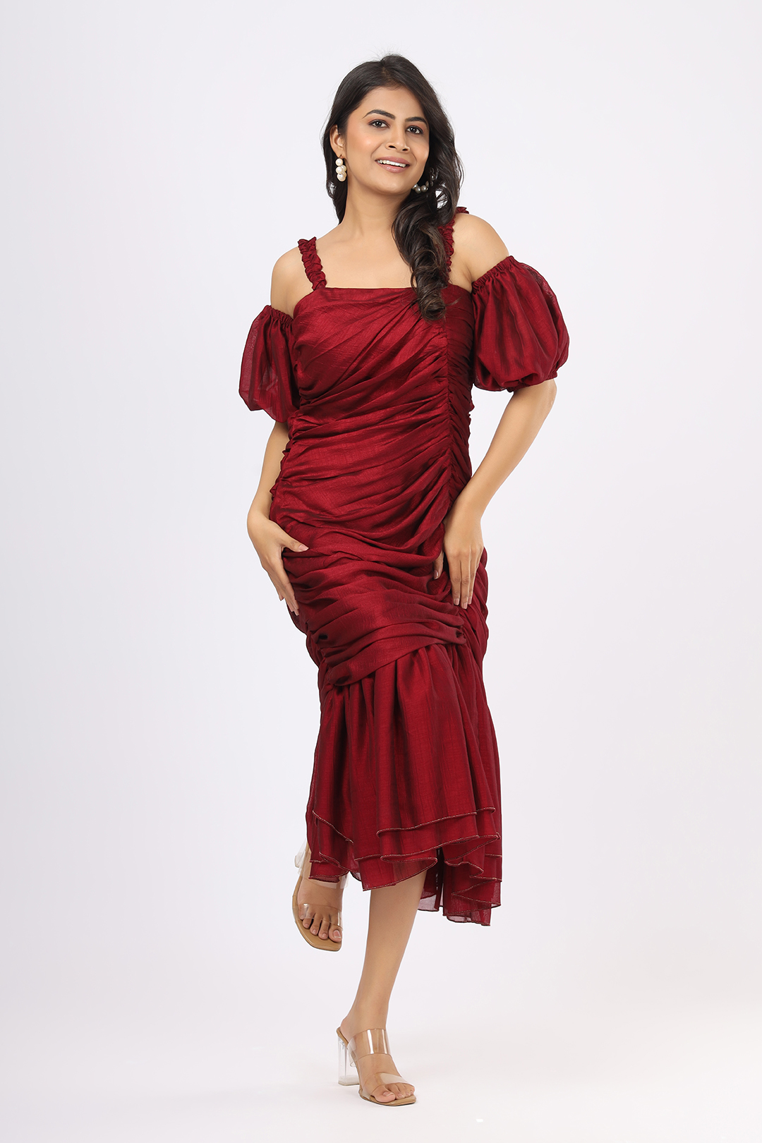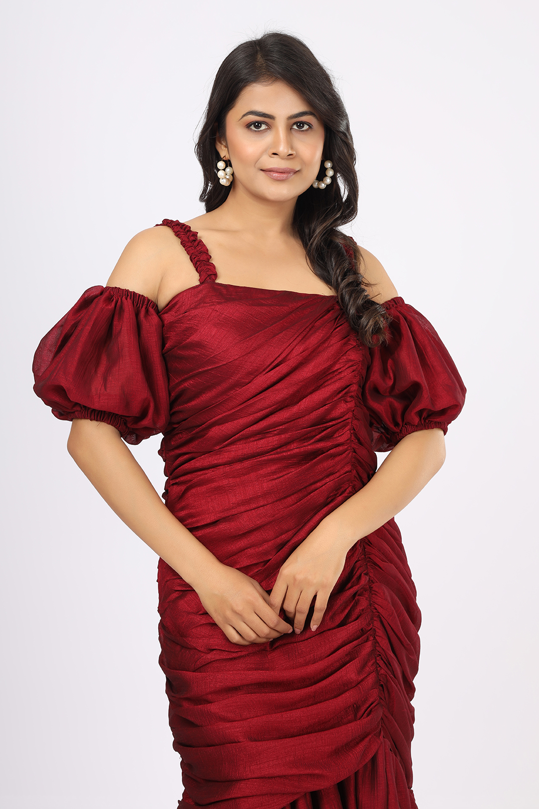 The elegant Dark Maroon shade adds richness and depth, making it a perfect choice for parties, events, and stylish evening outings.