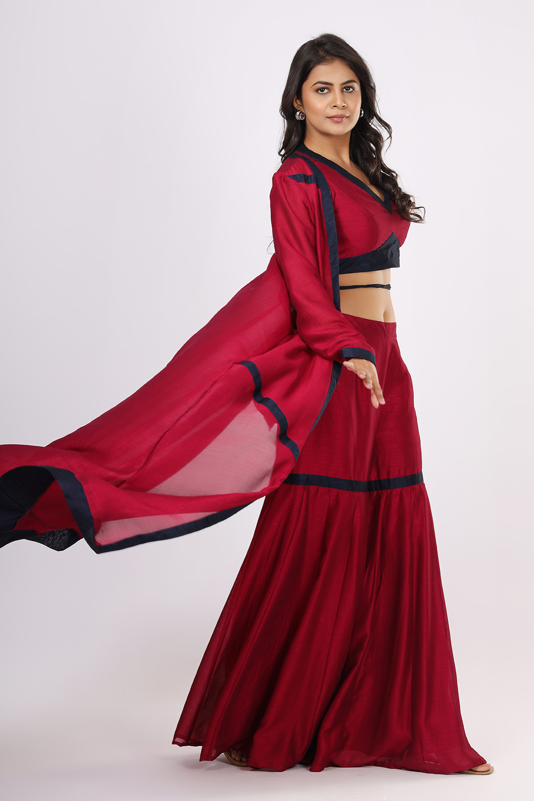 The coordinated three-piece design makes it ideal for festive occasions, events, and statement everyday styling. Exclusively designed by VGlame to enhance your modern ethnic-fusion look