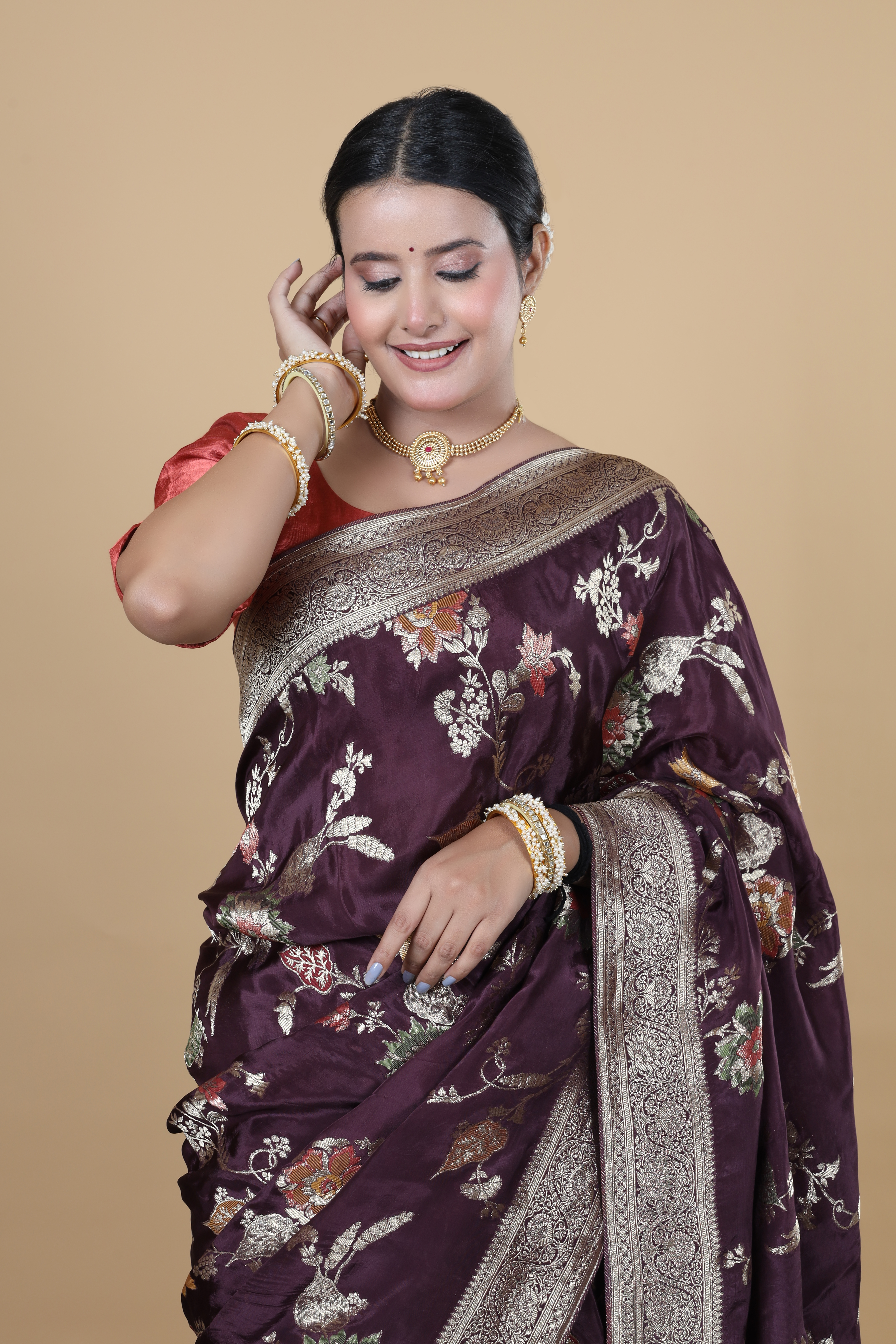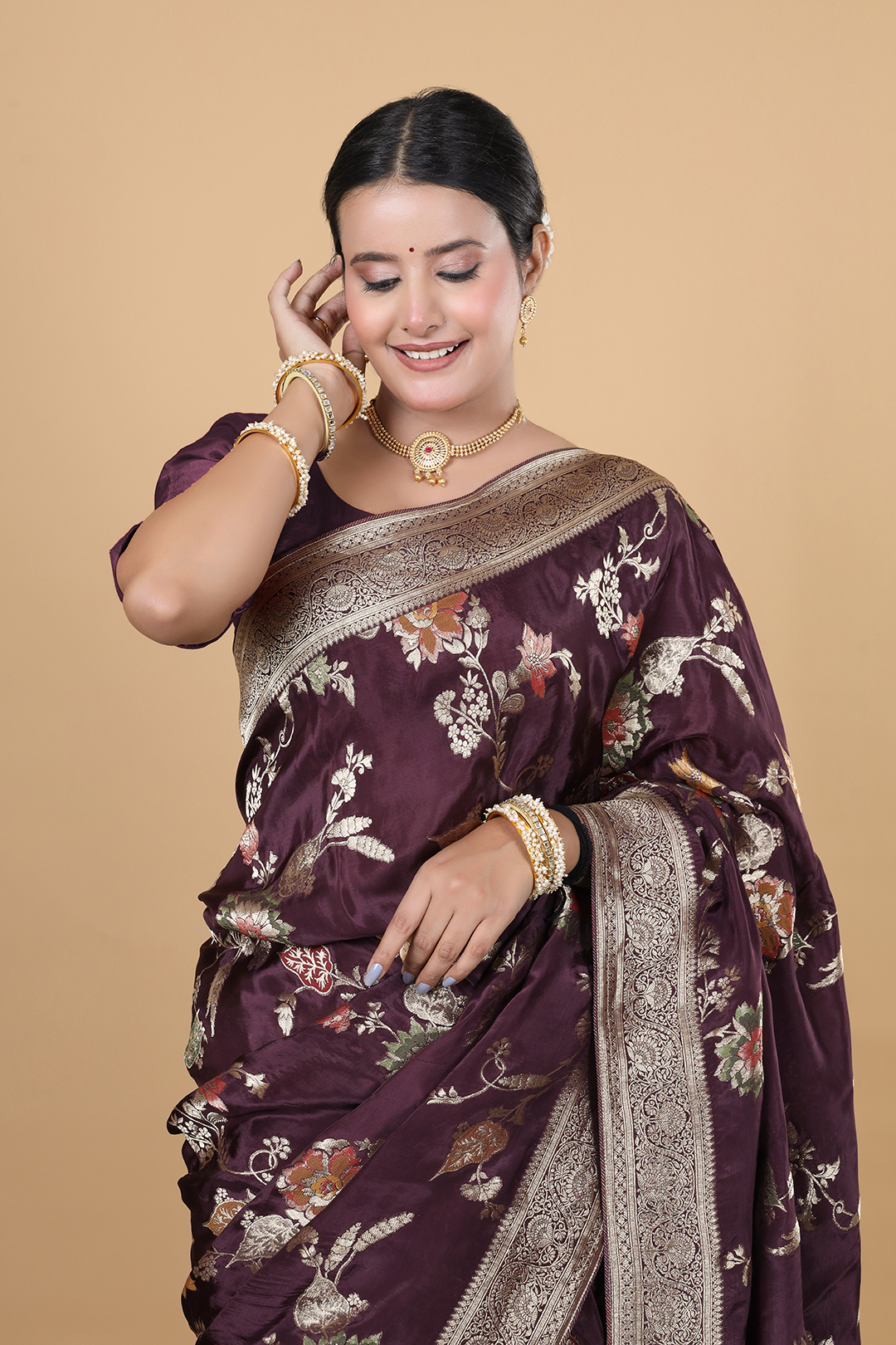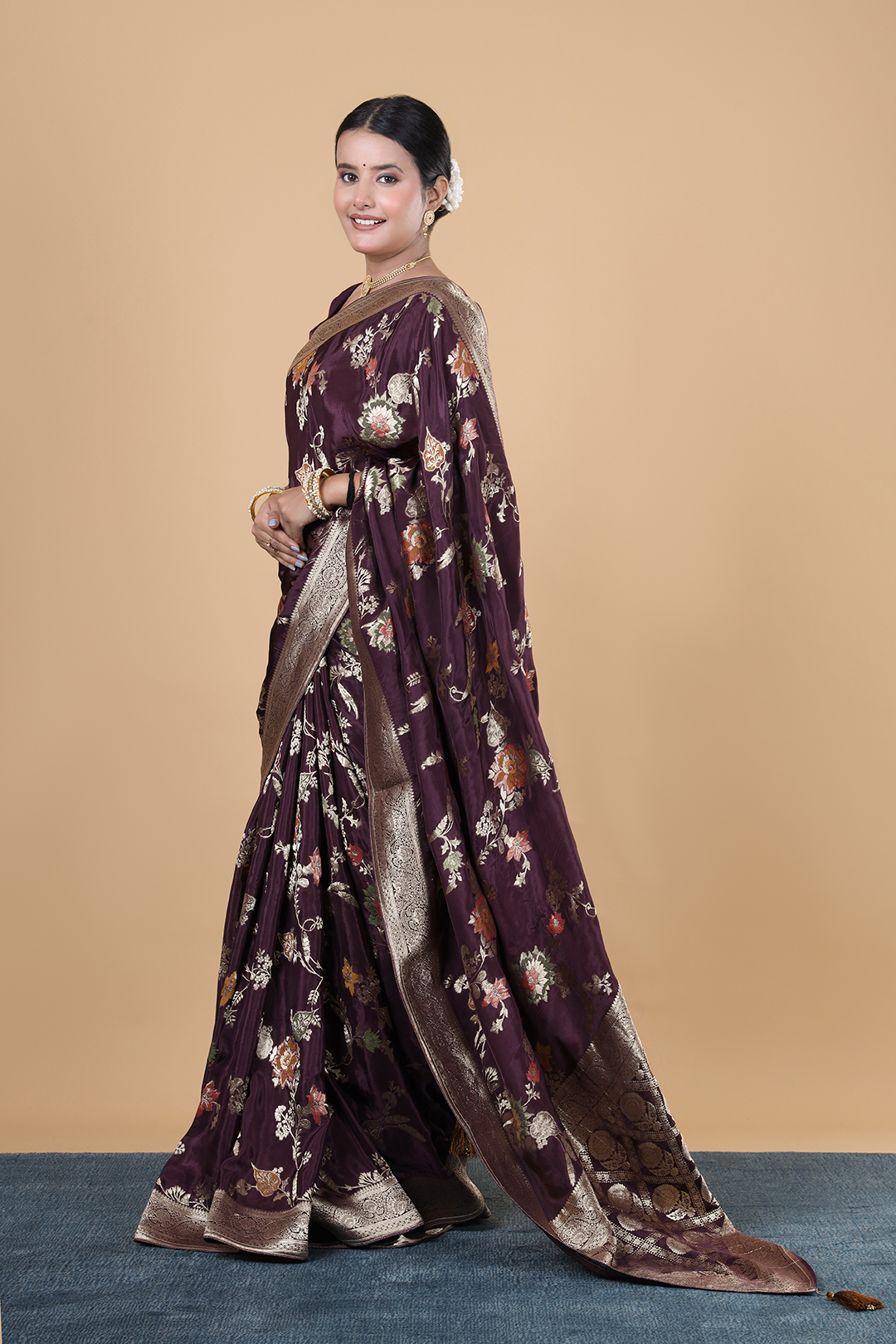 The rich wine color enhances the saree’s luxurious appeal, while the soft fabric ensures graceful draping and comfort. This 6.5-meter saree comes with an unstitched blouse piece, allowing you to create a tailored look that perfectly complements the saree.